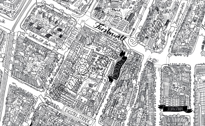 Für leidenschaftliche Düsseldorfer und Sammler bieten wir einen exklusiven Kunstdruck der Karte auf Hahnemühlepapier in verschiedenen Farbvarianten an. Die Karten werden von hochwertigen Rahmen von Dr. Krewani biGlas Bilderrahmen gerahmt und sind für je 499 € inkl. MwSt. zu erwerben. Natürlich verkaufen wir auch für das kleine Geld s/w-Prints der Karte für 20 € inkl. MwSt. Wer mag kann gerne die Karte individuell ausmalen.